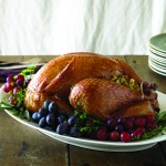 • Garnish your turkey platter with small clusters of red and black grapes, mixed with fresh herbs. The rich colourful hues of the grapes complement the roasted turkey’s golden brown skin.