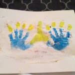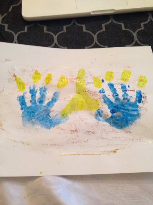 Everyone loves to finger paint! Make fun festive menorahs while enjoying a little messy paint time! Cover the palms of your little ones hands with paint. In the middle of a piece of construction paper, line up your paint-covered hands side by side with their thumbs touching. Gently and firmly press their hands onto the paper. Wash hands and put a finger into yellow, white, and/or red paint.