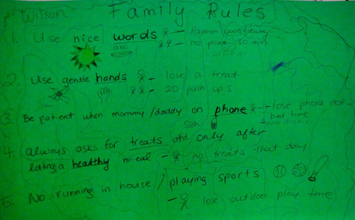 To begin attempting to avoid the same contentious issues we decided to hold a family meeting to make a list of house rules: I must use gentle hands and kind words; I can only eat a treat after dinner; and I will wait patiently, while my mom or dad is on the phone. Notice how all the rules are positive instead of saying something negative like I won’t interrupt my parents on the phone. This is something that Sarah Chana Radcliffe discusses at length in her book “Raise Your Kids without Raising Your Voice”.